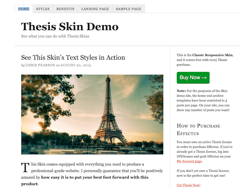 Avec lui, les développeurs WordPress expérimentés peuvent contrôler les moindres détails de leur site grâce à trois fonctionnalités que vous ne retrouviez pas dans les autres thèmes WordPress : les boîtes, les skins et les site tools. Il s’agit vraiment d’un framework, malheureusement en perte de popularité par rapport à des concurrents très innovants comme Divi ou Genesis.